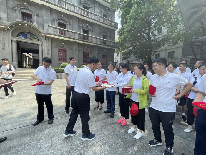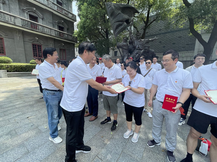 在庄严肃穆的八一起义纪念馆前,校领导为我校2021年度优秀共产党员,优秀党务工作者以及先进党支部现场颁奖,此情此景之下,大大增强了受表彰同志的荣誉感,也提升了全体党员的积极性。