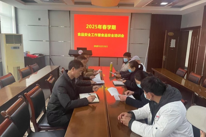 2025年春季学期即将开始,为保障学校师生在校期间的饮食安全,2月13日下午,我校在办公楼二楼会议室召开春季开学前食品安全工作培训会议,会议由后勤处副主任项楠主持。副校长徐飞、后勤处主任张启寿及食堂相关工作人员参加了会议。