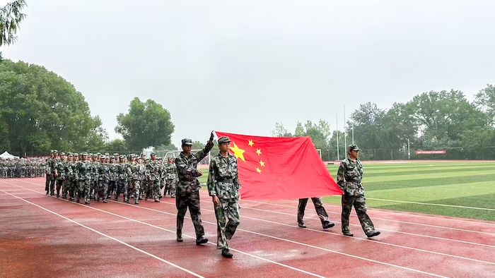 新生代表曹梦圆同学在军训总结发言中回顾了三周军训的收获与成长,展望了大学生活,并号召同学们以军训精神为指引,努力成长为新时代有为青年。